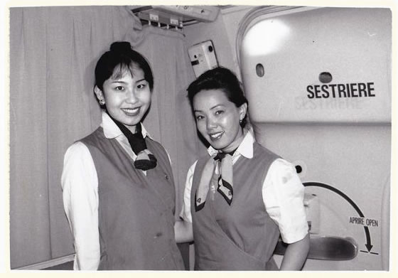 そこに、コンテストの協賛企業だったアリタリア航空の代表者と名乗るイタリア人の方が現れ、「我社に見学にいらっしゃいませんか」と言われました。子供っぽい気分で、あらっ副賞に何かを頂けるのかしら?ヨーロッパ線の航空会社(当時は霞ヶ関)を見学させて頂けるなら、と思いました。翌週、キャンパスの帰りに、裾の破れたジーンズとくたびれたTシャツ姿で約束の時間に合わせて航空会社の日本支社へ行くと、秘書の女性の丁寧な案内で大きな支店長室に通されました。そこには、当時の支店長がニコニコ笑って立っていました。大きく両腕を広げてイタリア式にハグをして下さり、まるですでに話が決まっていたかのように早口のイタリア語で、「君だね、すばらしいスピーチをしたんだって!我が社で働いてくれるかな?」と切り出したのです。あまりにも突然のことで面食らった私は、言葉がまったく出ずに、一体どう反応をしてよいのか分かりませんでした。「できるだけ早くローマでトレーニングを受けてもらいたいので一週間以内に返事を下さい」そう伝えられても、へーッこの私がヨーロッパ線で働けるの?身長が高いから目をつけてもらったのかな。あんなにひどいスピーチで失敗したと思ったのに、それでも、いいと思ってくれた人が一人でもいたんだ!と次第に喜びが湧き上がってきました。